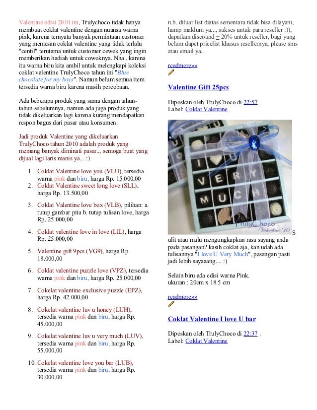 Jual Coklat Valentine Grosir Trulychoco Handmade Chocolate from trulychoco.com Maybe you would like to learn more about one of these? We did not find results for: Check spelling or type a new query.